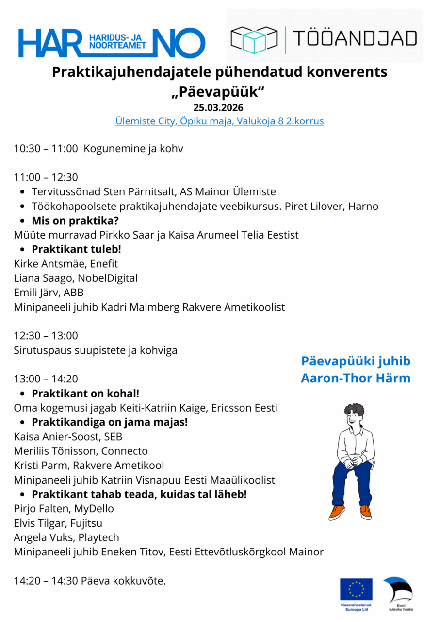 Praktikajuhendajatele pühendatud „Päevapüügi“ konverentsil tutvustatakse hiljuti valminud töökohapoolsete praktikajuhendajate veebikursust, mis on kättesaadav Digiriigi Akadeemias.